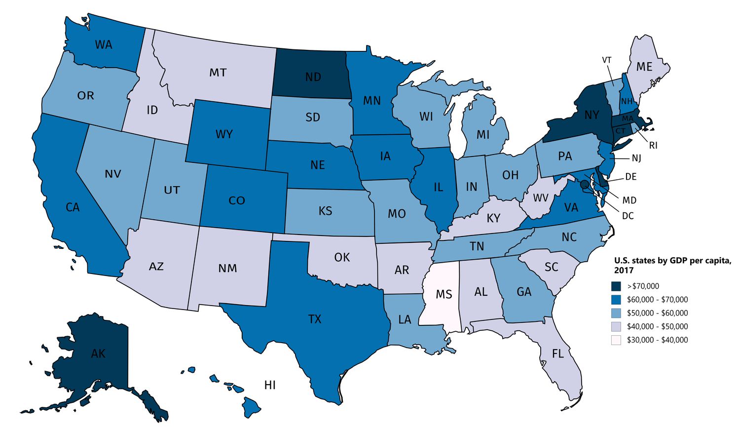 En 2021, il n’y a pas d’économie d’État aux États-Unis plus grande que la Californie, le Texas et New York, mais il existe des économies à croissance plus rapide. Parmi eux, selon les données du Bureau of Economic Analysis des États-Unis, le Nevada et l’Indiana se sont rapprochés de la croissance de 7,8 % de la Californie, tandis que le Tennessee et le New Hampshire étaient en tête du classement.