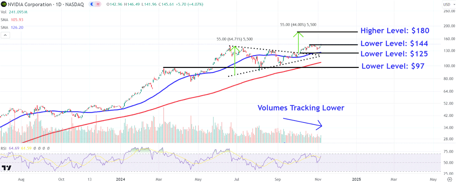 Pour l’avenir, les investisseurs devraient surveiller le rythme croissant des échanges de l’action tout en prêtant attention à ces niveaux de prix clés sur le graphique de Nvidia.