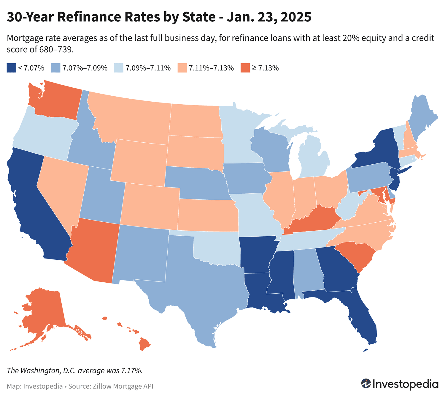 Pendant ce temps, les États avec les taux de refinancement les plus élevés mercredi étaient Hawaï, le Kentucky, Washington, DC, l’Alaska, l’Arizona, le Maryland, la Caroline du Sud et l’État de Washington. La fourchette moyenne de refi sur 30 ans dans ces États est de 7,13 % à 7,17 %.
