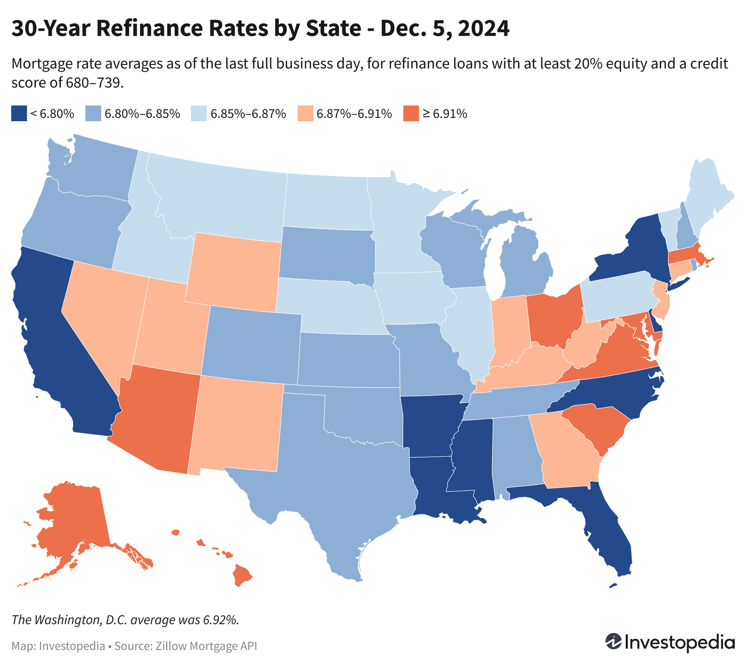 Pendant ce temps, les États avec les taux de refinancement les plus élevés mercredi étaient Hawaï, le Massachusetts, la Caroline du Sud, Washington, DC, l’Alaska, l’Arizona, le Maryland, l’Ohio et la Virginie. La fourchette moyenne de refi sur 30 ans dans ces États est de 6,91 % à 6,93 %.