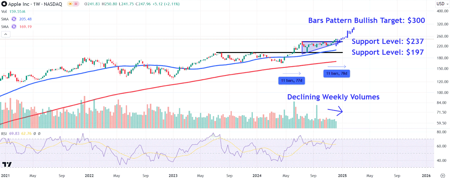 Utilisez l’analyse technique pour prévoir le prochain mouvement de l’action Apple et identifiez également deux niveaux clés qui pourraient fournir un soutien lors d’un repli.